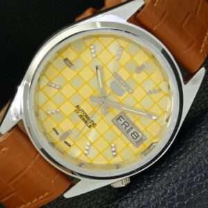 AUTOMATIC VINTAGE REFURBISHED SEIKO 5 JAPAN MENS YELLOW DIAL WATCH a440417-4