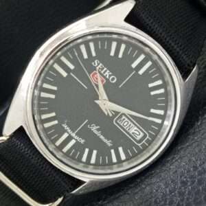 VINTAGE SEIKO 5 AUTOMATIC JAPAN 7009A MENS BLACK COLOR DIAL WATCH a702104-1