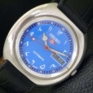 AUTOMATIC VINTAGE SEIKO 5 JAPAN 7006A MENS ARABIC BLUE DIAL WATCH a702456-1