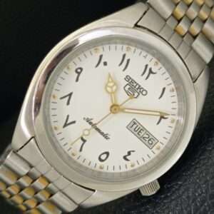 JAPAN VINTAGE SEIKO 5 AUTOMATIC 7009A MENS ARABIC WHITE DIAL WATCH a702457-1