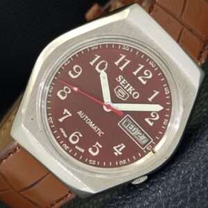 VINTAGE SEIKO 5 AUTOMATIC 7009A JAPAN MENS MAROON COLOR DIAL WATCH a702350-1