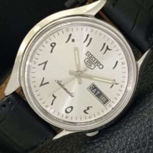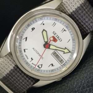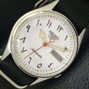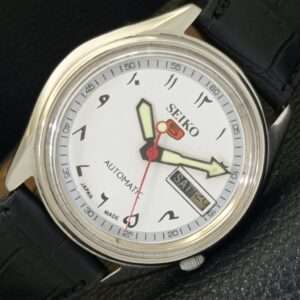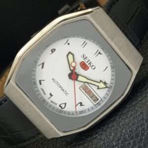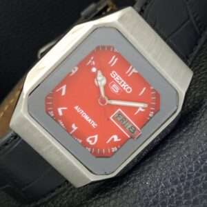 JAPAN VINTAGE SEIKO 5 AUTOMATIC MENS ARABIC RED COLOR DIAL WATCH a702452-1