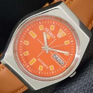 SEIKO 5 AUTOMATIC JAPAN 6309A MENS VINTAGE ORANGE COLOR DIAL WATCH a702723-1