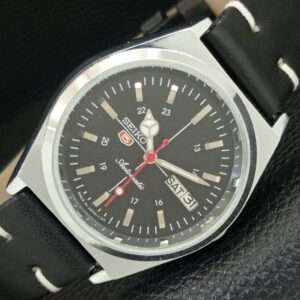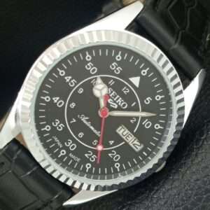 REFURBISHED SEIKO 5 AUTOMATIC 6309A JAPAN MENS VINTAGE BLACK WATCH a442949-1