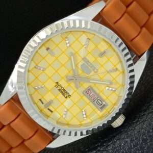 MENS VINTAGE SEIKO 5 AUTOMATIC REFURBISHED JAPAN YELLOW DIAL WATCH a440340-a
