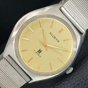 VINTAGE ALLWYN HAND-WINDING INDIA 6300A MENS GOLDEN COLOR DIAL WATCH a704794-1