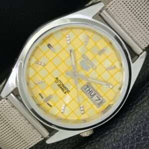 AUTOMATIC VINTAGE SEIKO 5 REFURBISHED JAPAN MENS YELLOW DIAL WATCH a440410-4