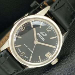 VINTAGE ENICAR STAR JEWELS HAND-WINDING SWISS MENS BLACK DIAL WATCH a703789-1