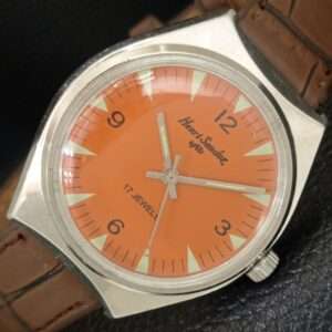 VINTAGE HENRI SANDOZ & FILS HAND-WINDING SWISS MENS ORANGE DIAL WATCH a704601-1