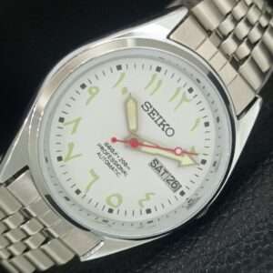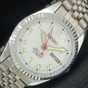 MENS VINTAGE REFURBISHED SEIKO 5 AUTOMATIC JAPAN WHITE DIAL WATCH a440363-u