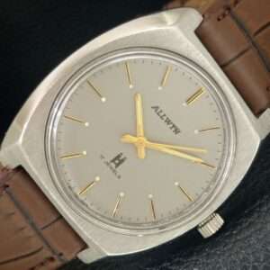 HAND-WINDING VINTAGE ALLWYN 6300A INDIAN MENS GREY COLOR DIAL WATCH a703957-1