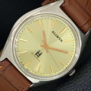 ALLWYN HAND-WINDING 6300A INDIAN MENS VINTAGE GOLDEN COLOR DIAL WATCH a703959-1