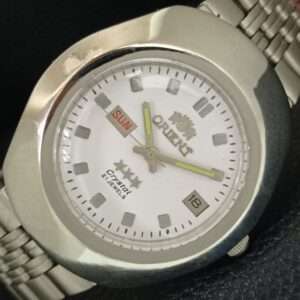 GENUINE VINTAGE ORIENT CRYSTAL AUTOMATIC JAPAN MENS WHITE DIAL WATCH a706311-1