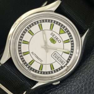 AUTOMATIC VINTAGE SEIKO 5 JAPAN 7005A MENS ARABIC WHITE DIAL WATCH a702440-1