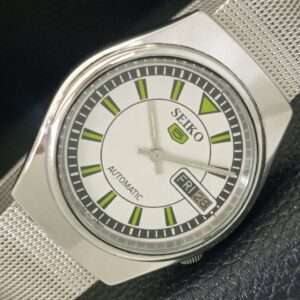 AUTOMATIC VINTAGE SEIKO 5 JAPAN MENS WHITE COLOR DIAL WATCH a702626-1