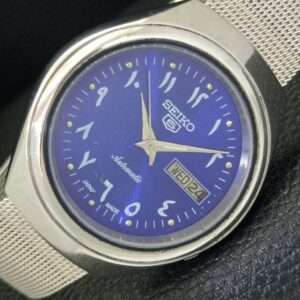 SEIKO 5 AUTOMATIC VINTAGE 7009A JAPAN MENS ARABIC BLUE DIAL WATCH a702116-1