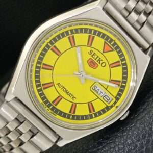 VINTAGE SEIKO 5 AUTOMATIC 6319A JAPAN MENS YELLOW COLOR DIAL WATCH a702701-1